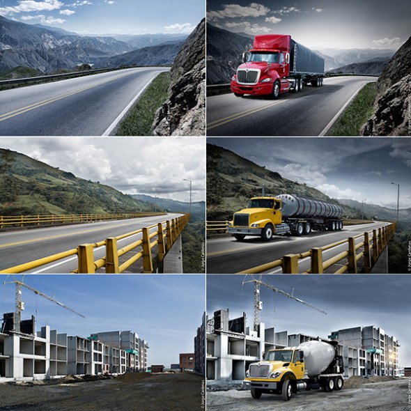 Recently, Cardenas received an assignment from International Trucks to shoot a series of beautiful and gleaming eighteen-wheeler trucks on location in Colombia. They wanted him to create strong, dynamic images that show the power of their trucks in different settings-from mountain and valleys to charcoal mines and other industrial landscapes, all of which you can find anywhere in South America.
