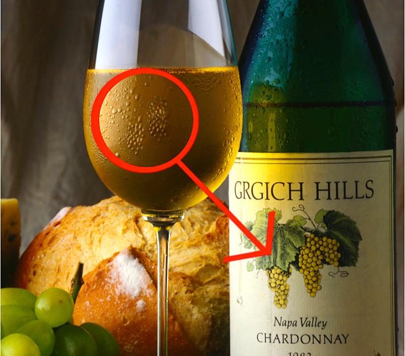 “This is some great sweat you got here, looks like you made grape leaves on the wine glass, very creative”. Then he asked me what kind of spray I used to get the sweat in the pattern that matched the label of the glass. I explained in my naïve eagerness that I carefully replaced cold liquids into the glass until the natural condensation started adding up. As this went on, I used a coffee stirrer straw and slowly blew the areas on the cold glass to create the grapes pattern (I could not afford the complex retouching for 8×10 “F” word). I stuck to my sweat.